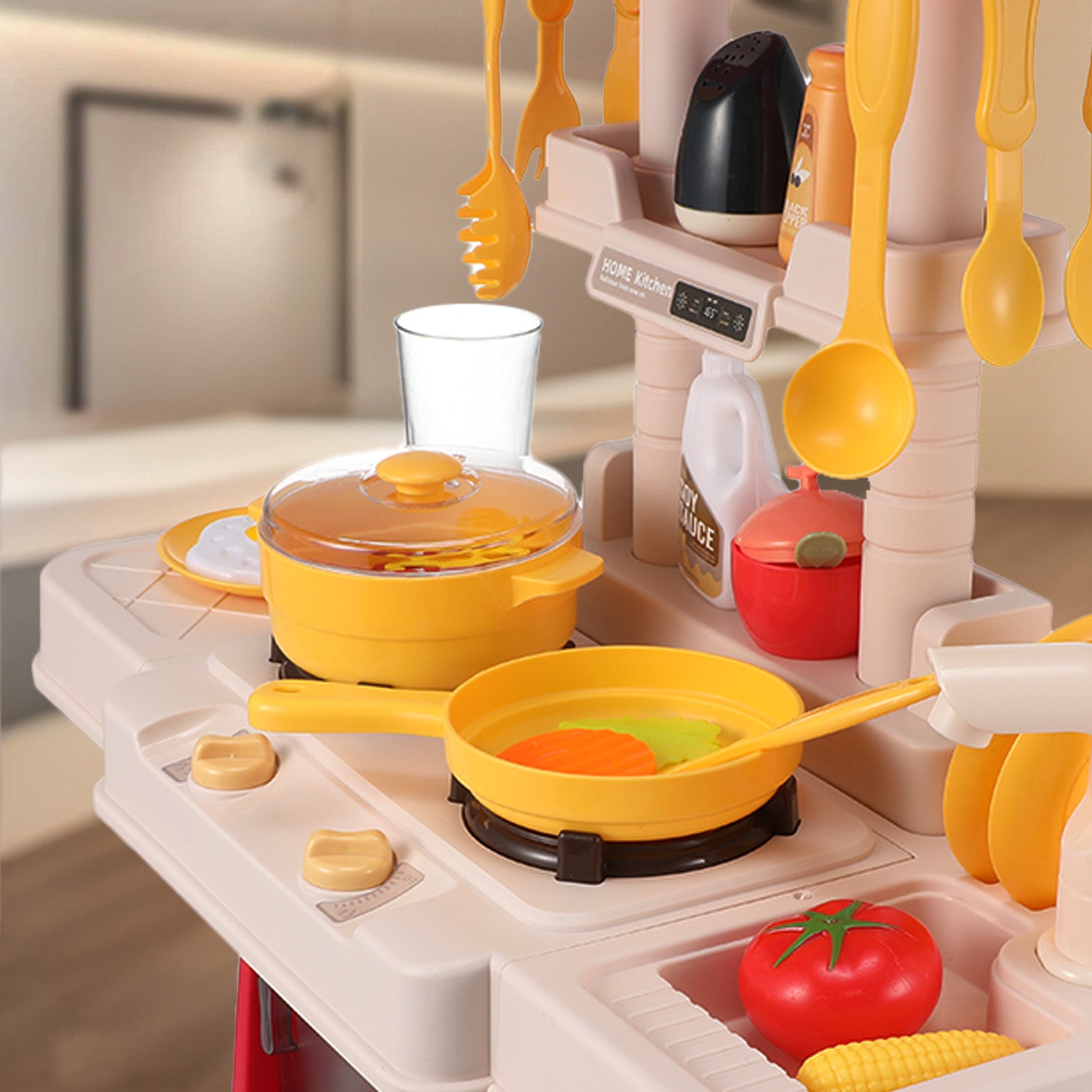 - The sink toy is equipped with a water circulation system. Kids can wash play food before cooking and clean utensils after, promoting awareness of water conservation through play and fostering environmental consciousness.