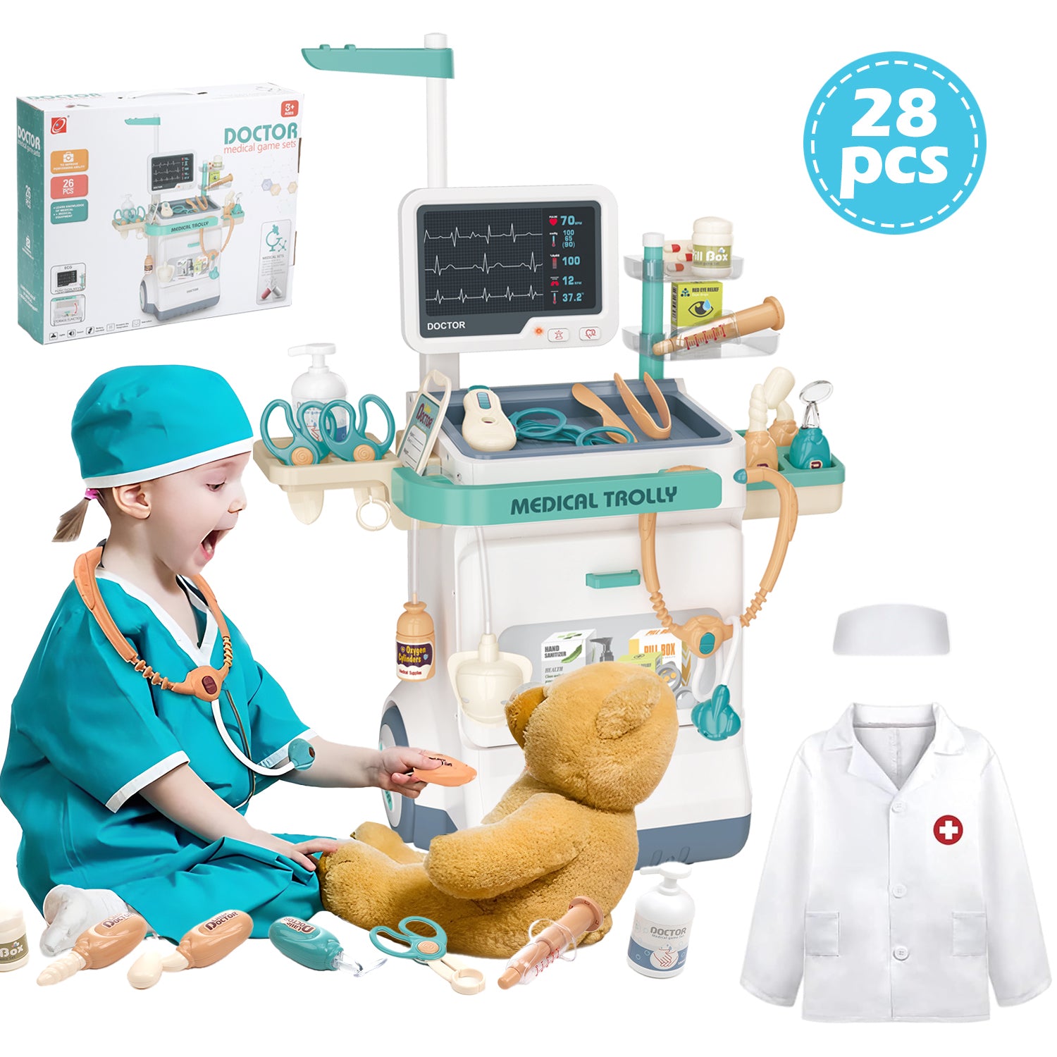 Zacro Doctor Kit for Kids, 28PCS Pretend Medical Station Toy Set for Boys & Girls, Mobile Cart with Lights Doctor Role Play Toys for Toddler Kids 3-8 Years Old